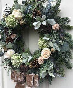 We recommend to fluff out your wreath & bow gently with your finger-tips after receiving your delivery/ before you hang your wreath to get the fullest effect. This wreath is ideally suited to a sheltered location, it is not suitable to be left outside during heavy rain/wind- we recommend to take indoors. When not in use cover & store in a safe place to enjoy year after year.